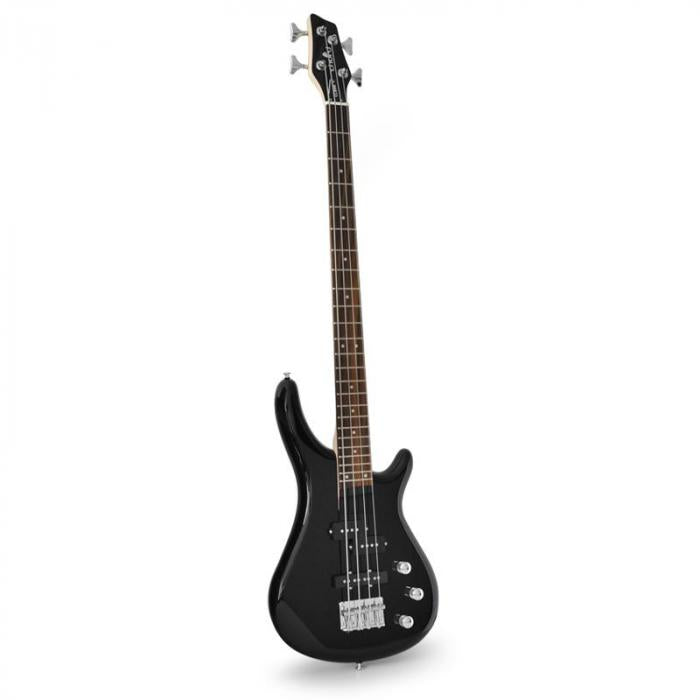 The CCB90 is a contemporary electric bass and benefits from a compact, contoured basswood body with a bolted deep cut joint to its maple neck. The HPL fingerboard holds 24 frets and the ultra-compact headstock is home to 4 closed geared tuners. A single coil and split humbucking pickups are controlled by 2 volumes and a single tone rotary. This is an extremely comfortable bass that is as much at home with slap styles as finger or pick playing.