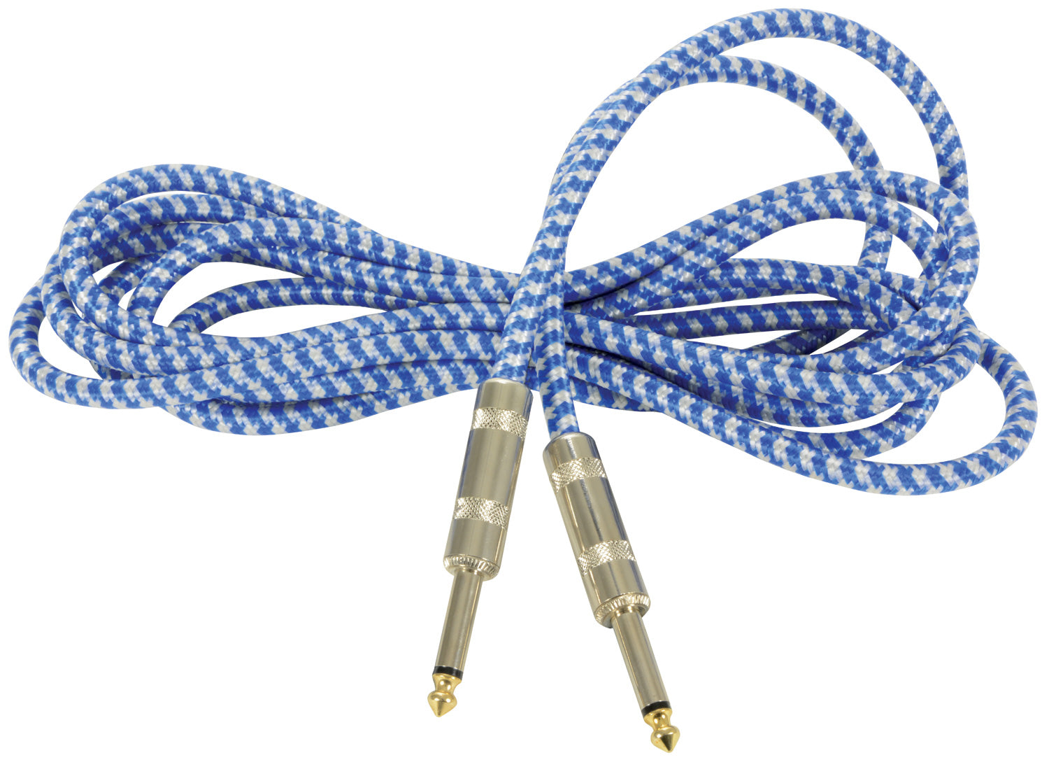 Classic Retro Braided Guitar Leads 6.3mm Mono Jack Plug - 6.3mm Mono Jack Plug: Blue/White (3.0m)