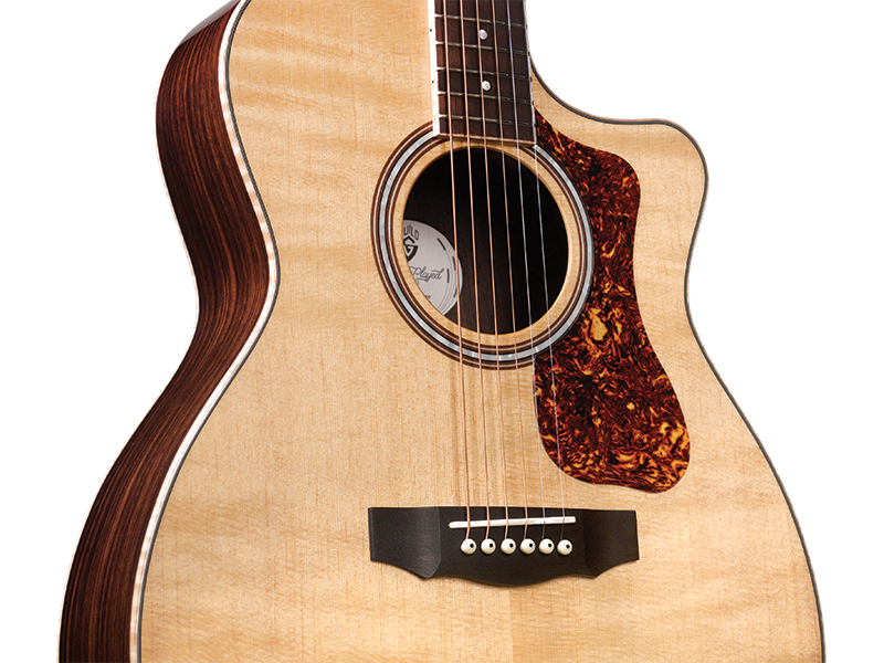 Exquisite, all-wood appointments make this Reserve Series Orchestra model a display of wood-working mastery. A member of the Guild Reserve Series, the OM-250CE Reserve features a solid spruce top, stunning, arched rosewood back and sides, and all-wood appointments including flamed maple binding, and an artfully crafted rosewood, maple, and pearl rosette. The high gloss finish on the top, back, and sides highlight the figured woods, while the satin neck finish ensures comfortable movement up and down the fretboard. Completing the package, the OM-250CE Reserve comes equipped with a trusted Fishman GT-1 pickup system so you can play with or without an amp.