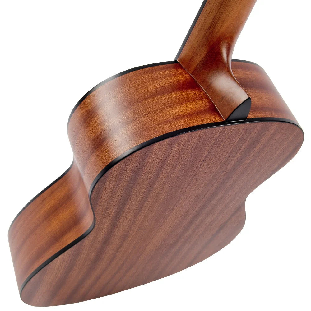 Needless to say, whilst this is a smaller instrument, the Santos Martinez attention to detail remains. Features include black bindings, a capped heal, detailed rosette inlay, profile-contoured capped headstock and chrome-plated machine heads with white buttons.